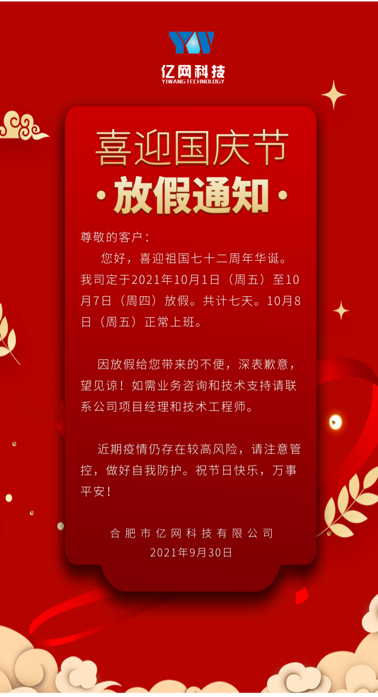 合肥市億網(wǎng)科技有限公司國慶放假通知